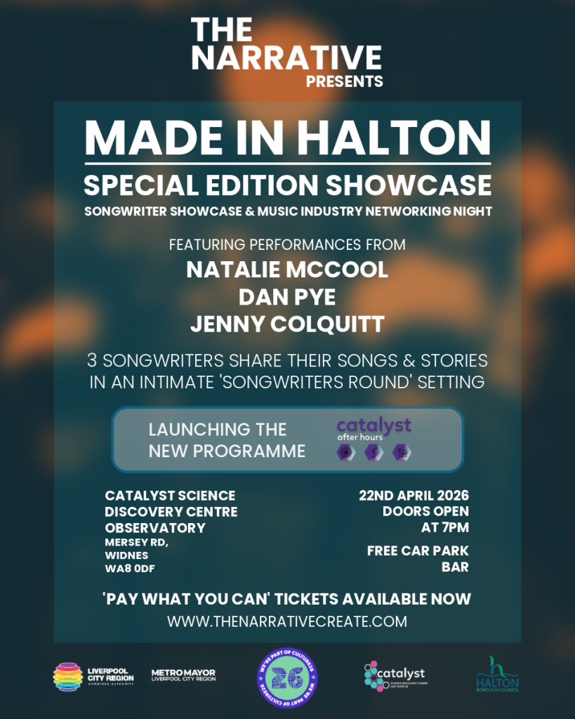 Catalyst and Halton Borough Council are excited to host MADE IN HALTON, a special edition showcase by The Narrative. The Narrative are an independent, creator-led organisation dedicated to empowering the creative community. Their mission is to provide inspiring platforms and welcoming spaces where creatives can connect, collaborate, and thrive.
